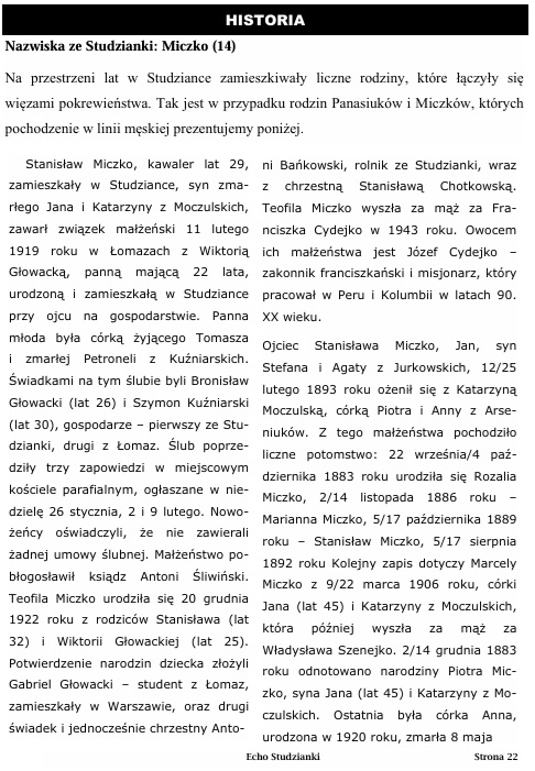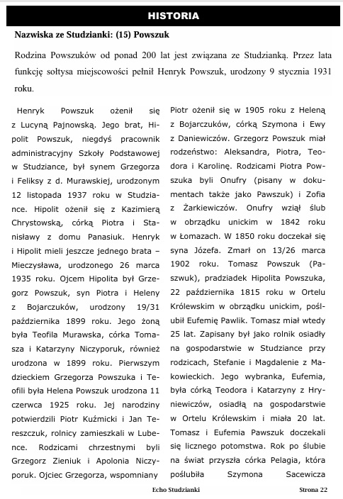oraz przedstawiamy dzieje rodzin o nazwiskach Panasiuk, Miczko oraz Powszuk.