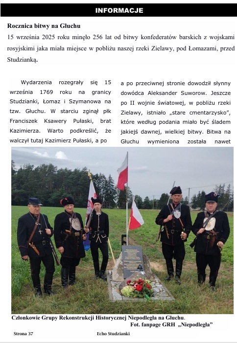 Zachęcamy do lektury oraz, jak zawsze, do nadsyłania własnych wspomnień związanych z naszą miejscowością. Tradycyjnie przygotowaliśmy również garść historii – tym razem przypominamy Bitwę na Głuchu