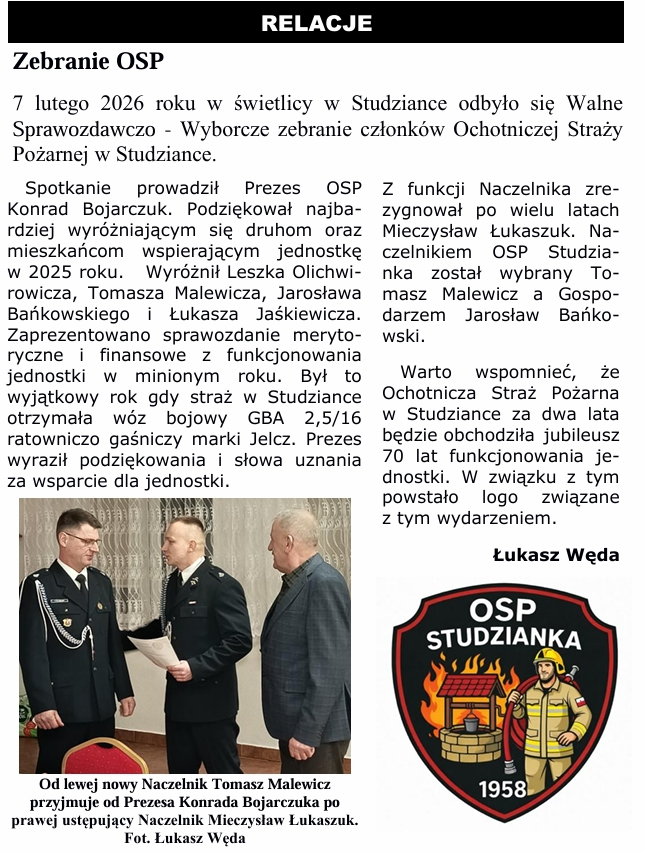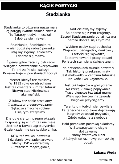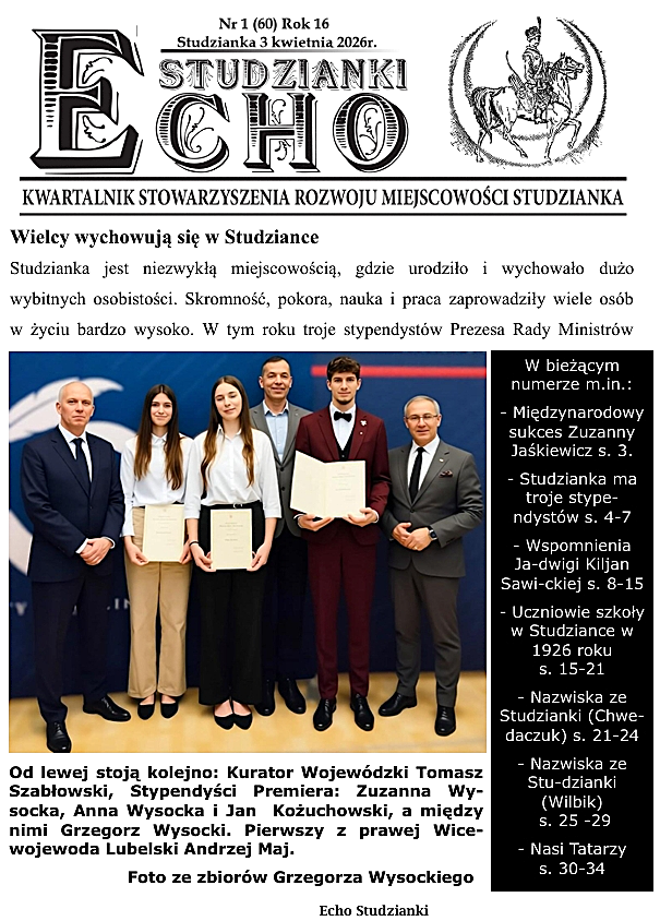 W bieżącym numerze Naszego czasopisma nie zabrało tematyki tatarskiej. Piotr Lasota z Pracowni Historii Mówionej pisze o „Naszych Tatarach”. Zamieszczamy informacje z życia Ochotniczej Straży Pożarnej w Studziance.
