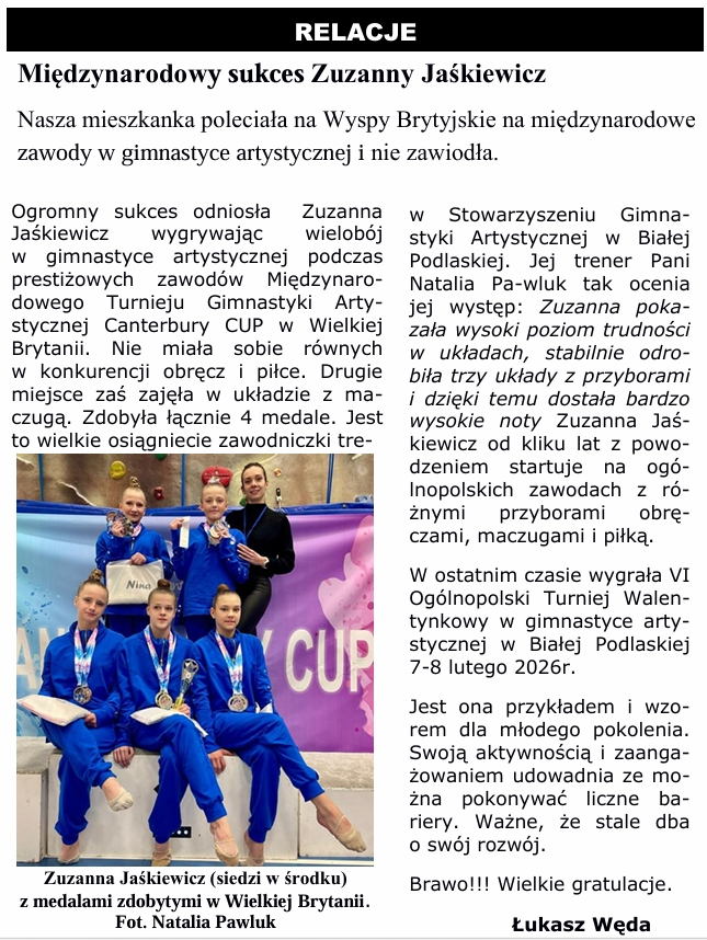 Piszemy o sukcesach naszych młodych mieszkańców Studzianki laureatach stypendium Prezesa Rady Ministrów, międzynarodowym osiągnięciu Zuzannie Jaśkiewicz, wgranej Adriana Niedźwiedzia w turnieju Darta oraz Majce Wysockiej laureatce konkursu z języka rosyjskiego.