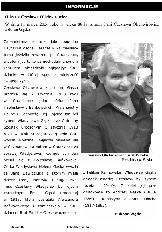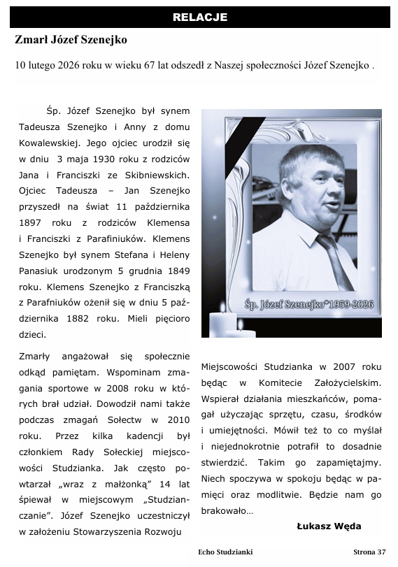 Wielkie uznanie i szacunek dla włożonego wysiłku, determinacji i wytrwałości. Gratulacje dla Was, rodziców, ale także dla obecnych nauczycieli, a także tych którzy uczyli ich w szkole w Studziance i Łomazach. Nauka nie poszła w las. Jesteście najlepsi z najlepszych. Możemy być dumni, że pochodzą stąd z małej Studzianki, gdzie rodzili się przecież wielcy m.in. takie osoby jak prof. Bolesław Hornowski, prof. Czesław Józefaciuk, konstruktor inżynier Stanisław Daniewicz, pułkownicy Mieczysław Janowicz i Józef Bojarczuk, czy artystka Renata Owczaruk.