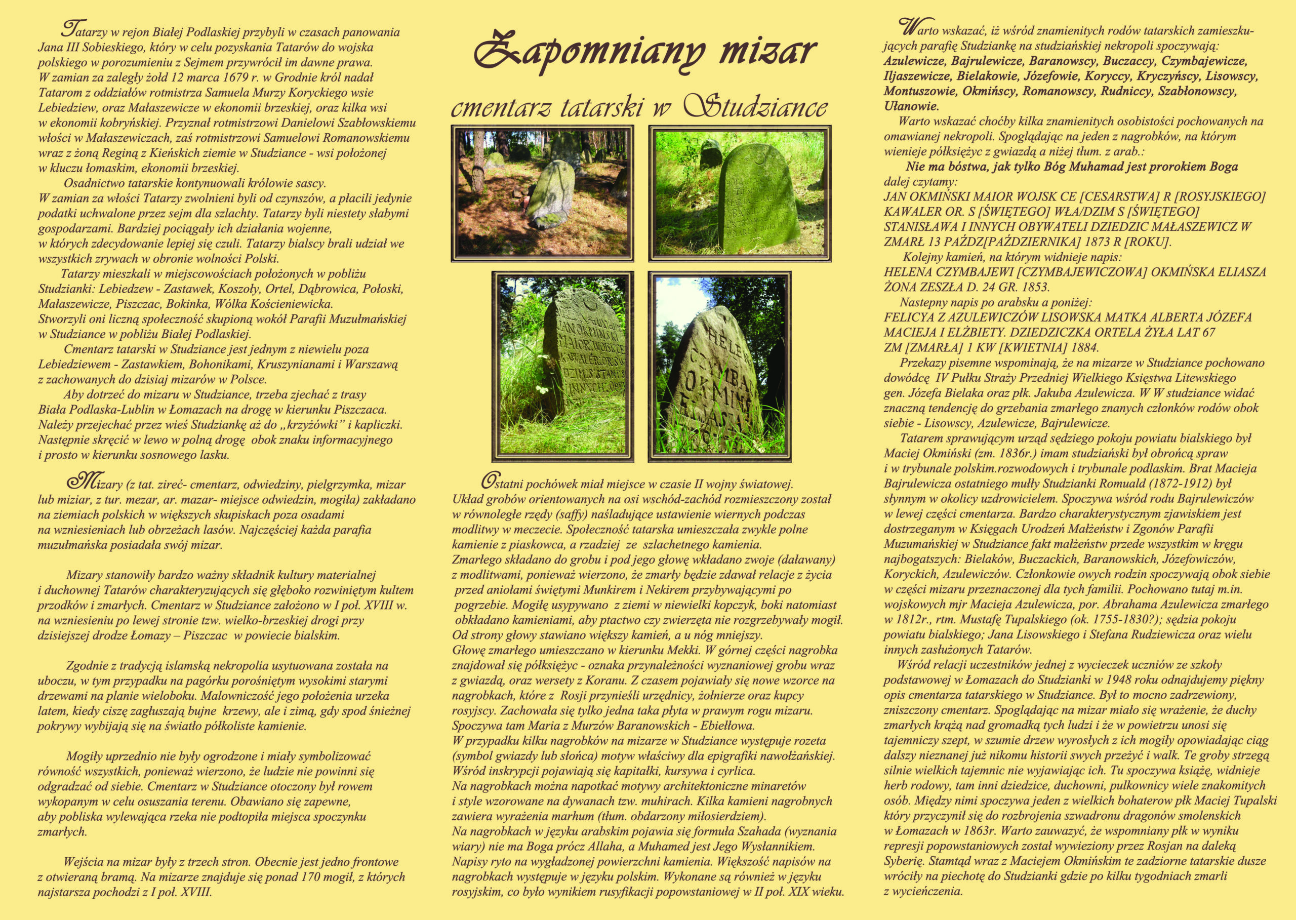 Zapomniany mizar – cmentarz tatarski w Studziance