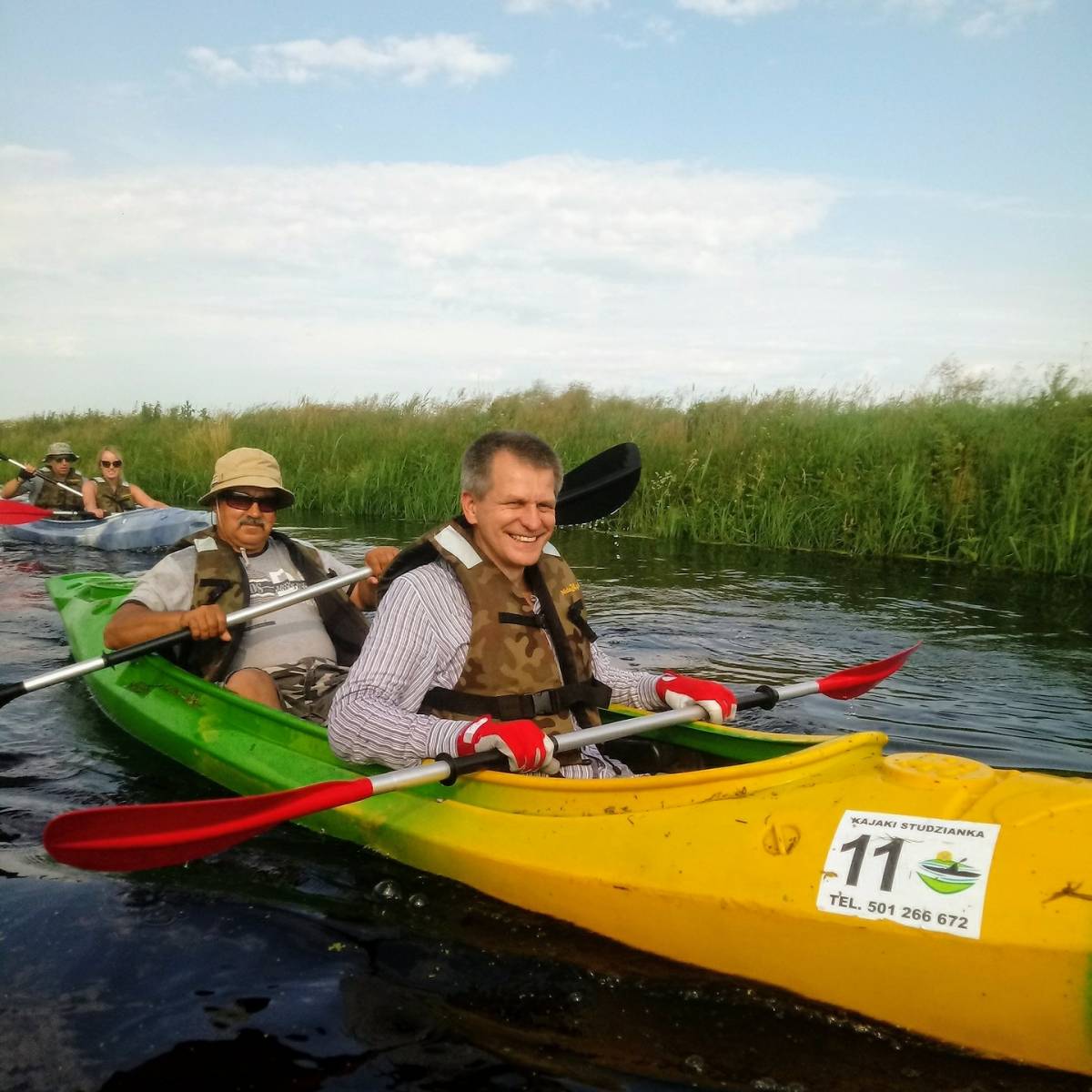 Warto pod-kreślić, że rzeka Zielawa. Rzeka zupełnie inaczej wygląda z ko-ryta. Dostrzega się bogatą roślinność i liczne mostki. Najbardziej malowniczy z nich wi-dać w Dubicy koło Wisznic, gdzie płynąc kajakiem można odnieść wrażenie, że jest się w obrazie Claude Moneta „Japoński mostek w Giverny”. W rzeczywistości jest trochę większy niż na płótnie fra-ncuskiego impresjonisty. Na trasie po Zielawie odnajdziemy ponad 40 mostów, kładek i mo-steczków. Na całej trasie spływu widać prace bobrów. Takie przeszkody dodają smaczku wyprawie. Następnie płyniemy w kierunku Rossosza mome-ntami ścinamy łąkami rzekę. Bardzo urokliwe miejsce przy moście w stronę Bordziłówki budzi zachwyt i podziw. W Sze-leście dopada nas burza, która udało się przewidzieć i dzięki te-mu znaleźliśmy schronienie pod mostem. Po przeczekaniu mo-cnego deszczu z gradem i pio-runami płyniemy dalej. Między miejscowościami Szelest a Ju-saki Zarzeka duża ilość za-krętów robi złudzenie, że płyniemy w kółko. Wody jest dużo więcej. Tutaj na moście zaplanowaliśmy kolejny postój. Płynąc dalej dostrzegamy z koryta rzeki wieżę kościoła neogoty-ckiego pw. Św. Piotra i Pawła w Łomazach z 1911 roku. W Ło-mazach mamy przepłynięte 42km czyli maraton. Kilka kilometrów i mamy Głuch pole, miejsce bitwy 15.09.1769 r. w której zginął płk Franciszek Ksawery Pułaski, brat Kazimierza: „Na tyłach, od strony Łomaz pojawili się karabinierzy rosyjscy pod wodzą Castellego. Ocalenia szukali Pułascy w bra-wurowym ataku. Franciszek do-padł samego Castellego, lecz ten zdążył śmiertelnie wypalić do niego z pistoletu. W 1931 lub 1932 r., niejaki Bojczewski ze Studzianki, odnalazł w tym mie-jscu szkielety ludzkie, szczątki trumien i zbroje. Około 1935 r. cmentarz zaorano. Według W. Osipiuka z Białej Podlaskiej jeszcze po II wojnie światowej w pobliżu rzeki Zielawy, istniało „stare cmentarzysko”, które we-dług podania miało być śladem jakiejś dawnej, wielkiej bitwy. Bitwa na Głuchu wymieniona zo-stała nawet w „Zemście” A. Fre-dry w akcie IV scenie 1. Cześnik Raprusiewicz dobywając szablę mówi: He, he, he! Pani barska! Pod Słonimiem, Podhajcami, Ber-dyczowem, Łomazami dobrze mi się wysłużyła. Z kajaka niestety nie widać tablicy opisującej to miejsce. Chwilę później zbliżamy się do Studzianki. Z koryta rzeki widać pola, domu i zainteresowanych nami mieszkańców. Na 48 kilometrze w Szenejkach, dawnym majątku rodu Szenejko, którzy od 1672 r. do 1939 r. byli właścicielami folwarku otrzymujemy od miejscowych gospodyń pyszna zupę. Warto dodać, że to w pobliżu mostu w czasie II wojny istniało mini getto, gdzie pracowali Żydzi. Dalsza trasa biegła przez Dokudów dawne miasteczko Lewkowo, Ortel Królewski gdzie z koryta rzeki widać zabytkowy drewniany kościołek z 1706 roku. Ostania część wyprawy to Perkowice i Kłoda. Po kilkunastu godzinach wpłynęliśmy do Krzny ujścia naszej Zielawy w miejscowości Woskrzenice.